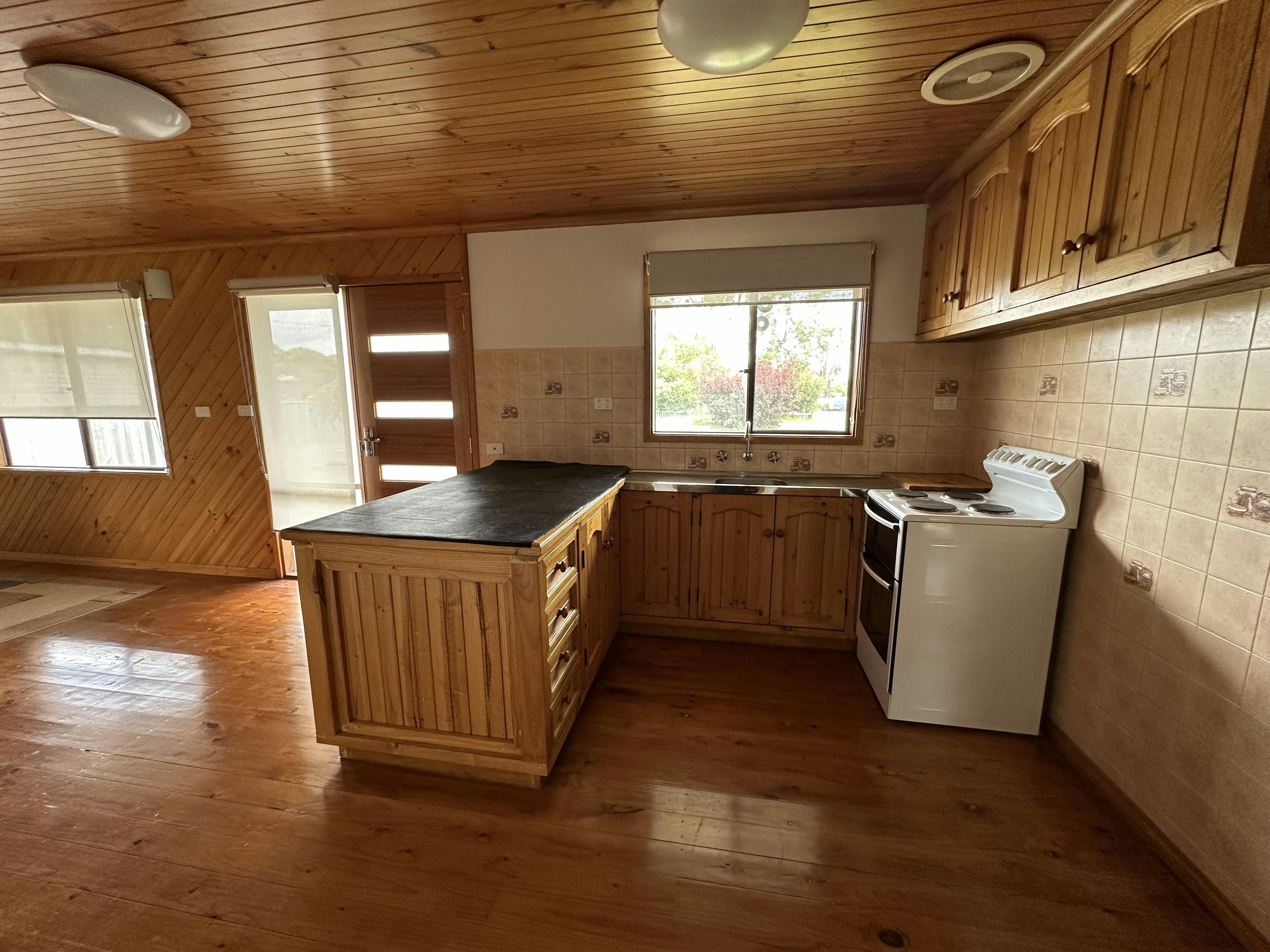 - Separate dining area adjoining a functional kitchen with electric oven